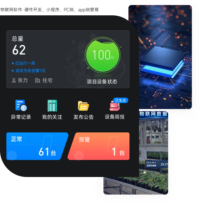 我們能為您提供各種軟件系統設計開發以及基于物聯網的系列軟硬件技術服務和整體解決方案,物聯網(SaaS)平臺建設,云端業務系統軟件開發,PC、微信小程序、安卓/IOS、App管理端,硬件系統方案設計、硬件電路開發、傳統硬件智能化,通信技術模塊、傳感器模塊選型及開發